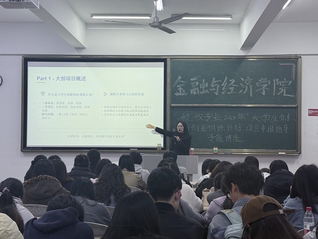 为落实学校卓越人才工程,助力williamhill英国中文金穗·卓越领航计划,提升我院学生明晰大学生创新创业训练计划项目申报流程、精准把握选题方向及申报书撰写质量,3月31日晚,我院举办2026年“大学生创新创业训练计划”项目申报指导专题讲座,副教授王洪艳老师作为主讲嘉宾,为学生的大创项目申报工作提供专业指导与支持。
